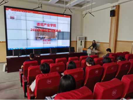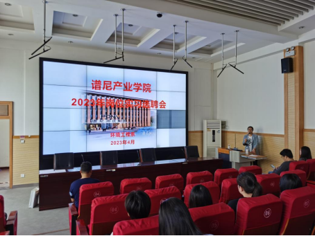 为做好2024届学生的岗位实习工作,4月20日,星空彩票官方苹果召开谱尼产业学院2023年岗位实习选聘会,郑州谱尼测试技术有限公司人事经理张贞到场宣讲,系2021级学生参加。