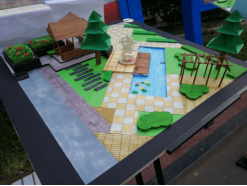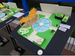 实训的对象是我校图书馆前绿地,主题是“空间限定·图书馆师生休息角设计”。17园林共43个学生,每个学生独立进行设计,分组进行模型制作,每组3-4人,共11组,每组自行选择本组成员的设计方案进行模型制作。