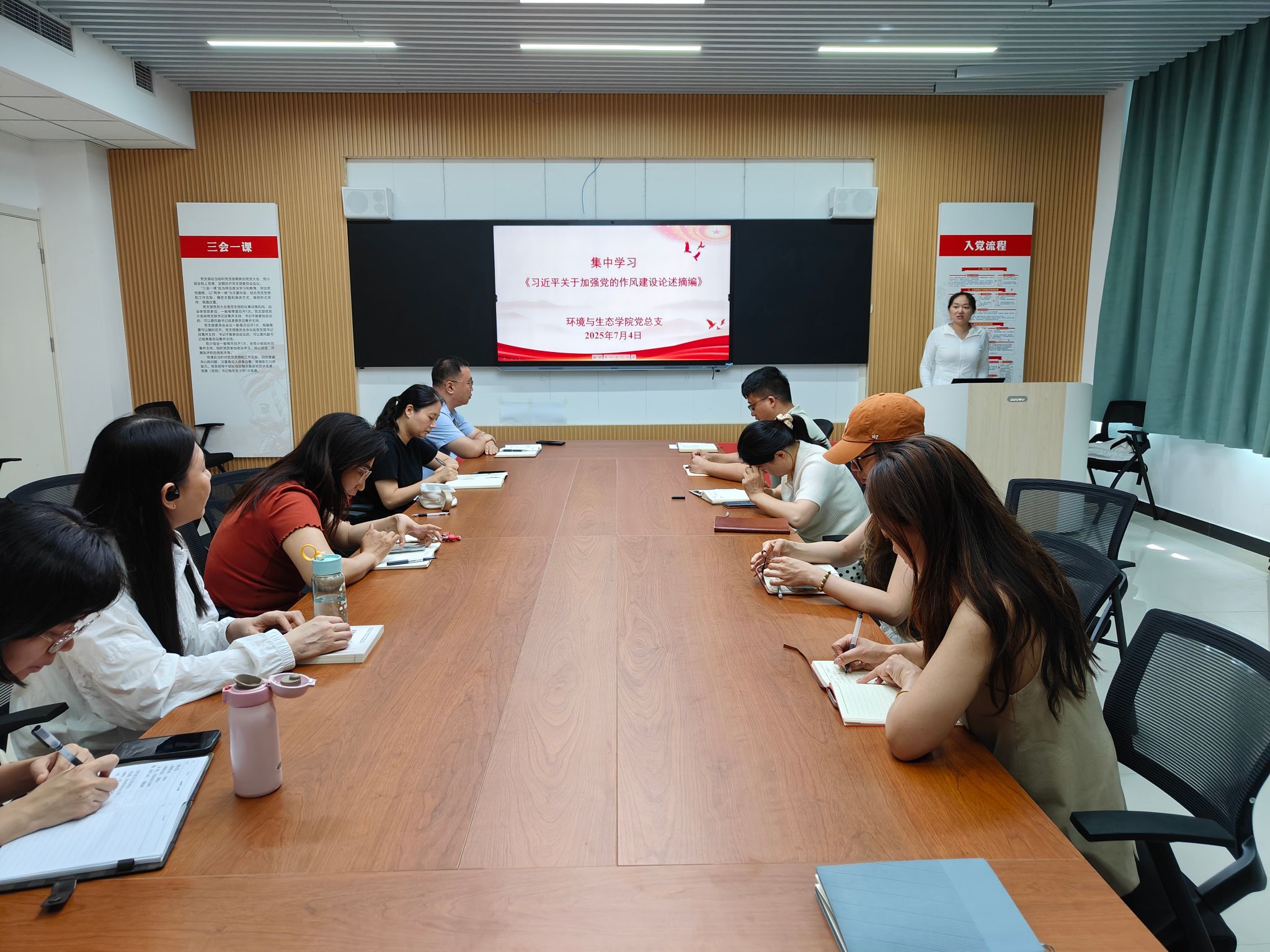 环境与生态学院党总支书记邢伟明带领全体教职工集中学习了《习近平关于加强党的作风建设论述摘编》,重点领学了《党的作风关系人心向背,决定党和国家事业成败》章节。她强调,全体党员和教职工要认识到作风建设的极端重要性和紧迫性,要深刻领会精神实质,自觉锤炼过硬作风。